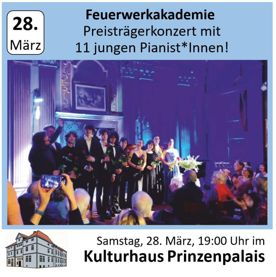 Sa, 28. 03. 19:00 Uhr - Feuerwerkakademie Preisträgerkonzert mit 20 jungen Pianist*Innen!