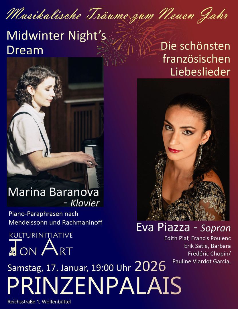 Neujahrskonzert am 17.Januar, 19:00 Uhr im Prinzenpalais mit Eva Piazza und Marina Baranova: