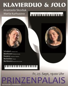 Perspektiven für Studium und Auftritte. Im Prinzenpalais gestalten sie gemeinsam einen Konzertabend solo und vierhändig bzw. an zwei Klavieren, nachdem sie hier bereits eine Kostprobe ihres