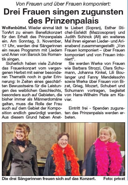 Wir freuen uns auf ein Benefizkonzert für das Prinzenpalais aus dem Umfeld von TonArt.