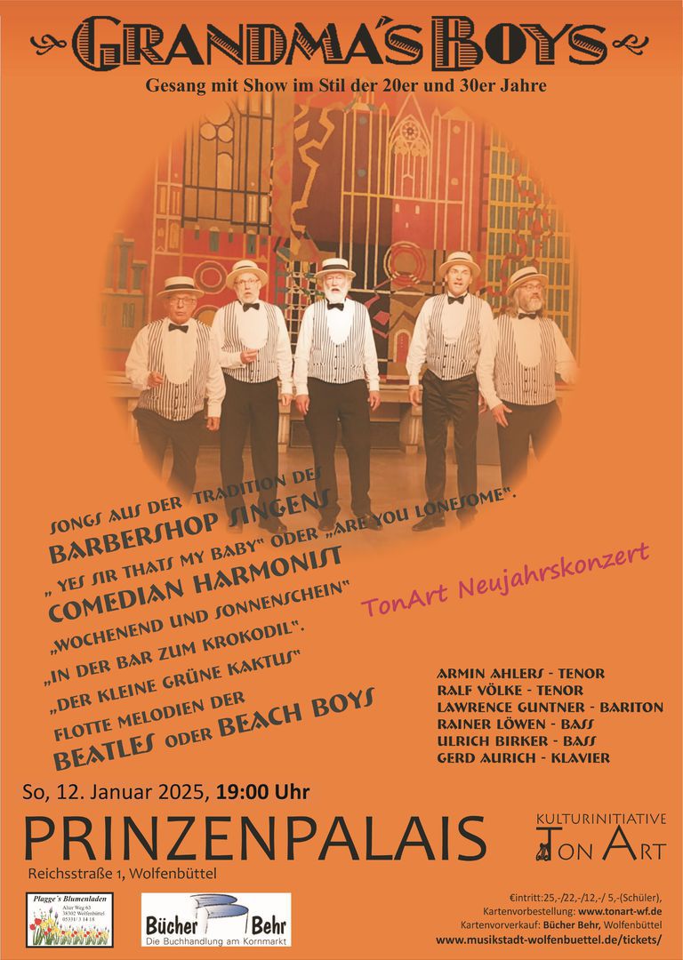 12.01. 19:00 Uhr GRANDMA’S BOYS Gesang/Show im Stil der 20er und 30er Jahre TonArt