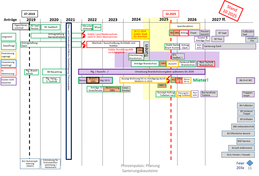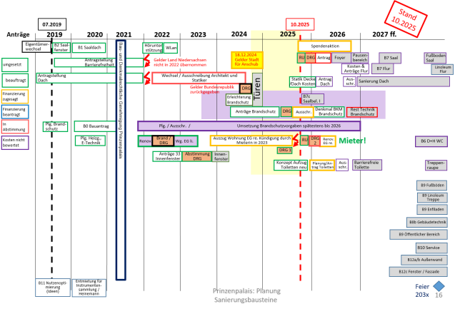 2024 wurde aus Risikoerwägungen das nicht gestartete Dachprojekt an den Bund, den Denkmalschutz und die DSD zurückgegeben.